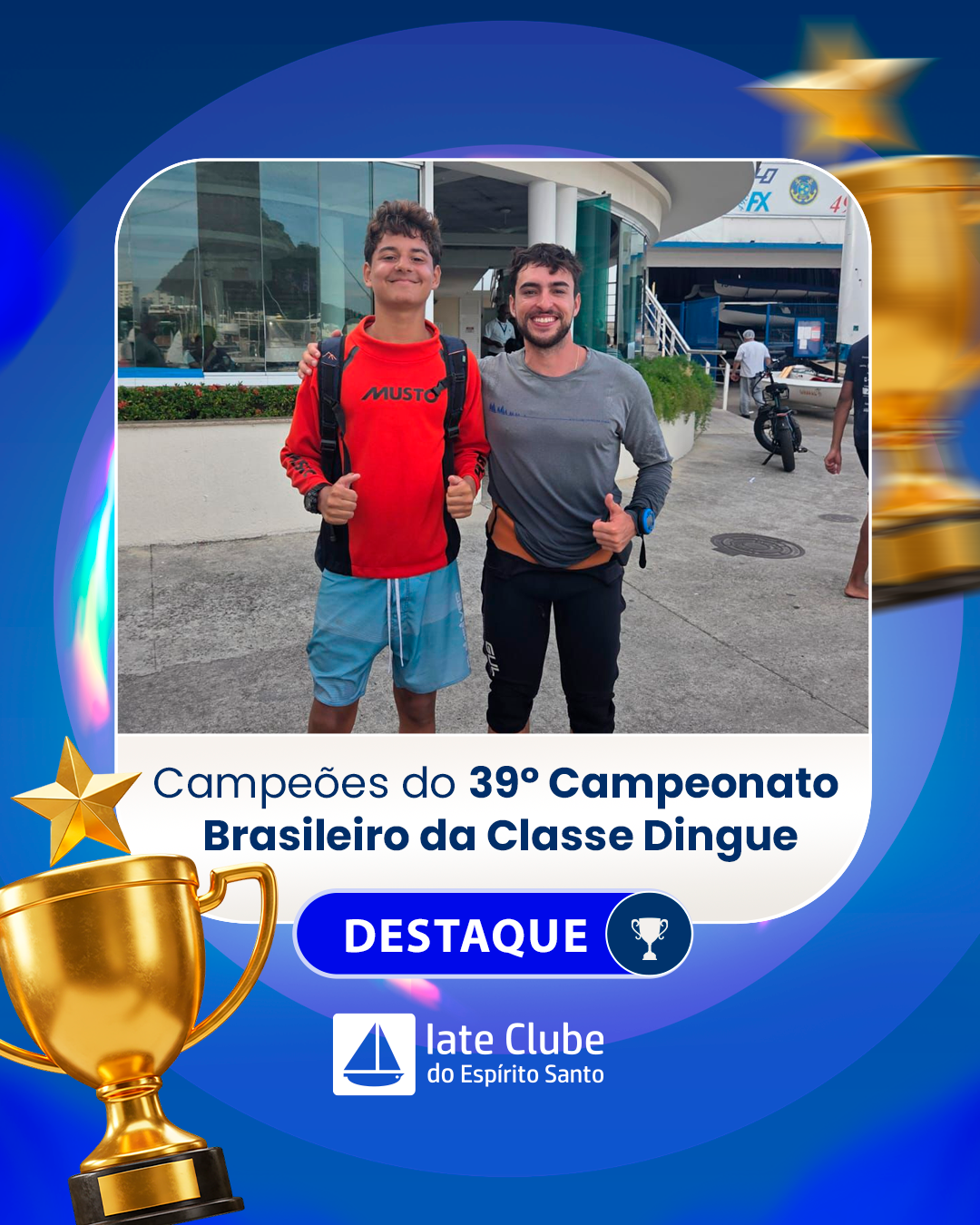 “Gabriel e Nicholas representam o melhor do ICES: técnica, disciplina, espírito esportivo e paixão pelo mar. É uma alegria enorme ver nossos atletas e treinadores alcançando o lugar mais alto do pódio em um campeonato tão prestigiado. Essa conquista é motivo de orgulho para todo o nosso clube e para o Espírito Santo.”