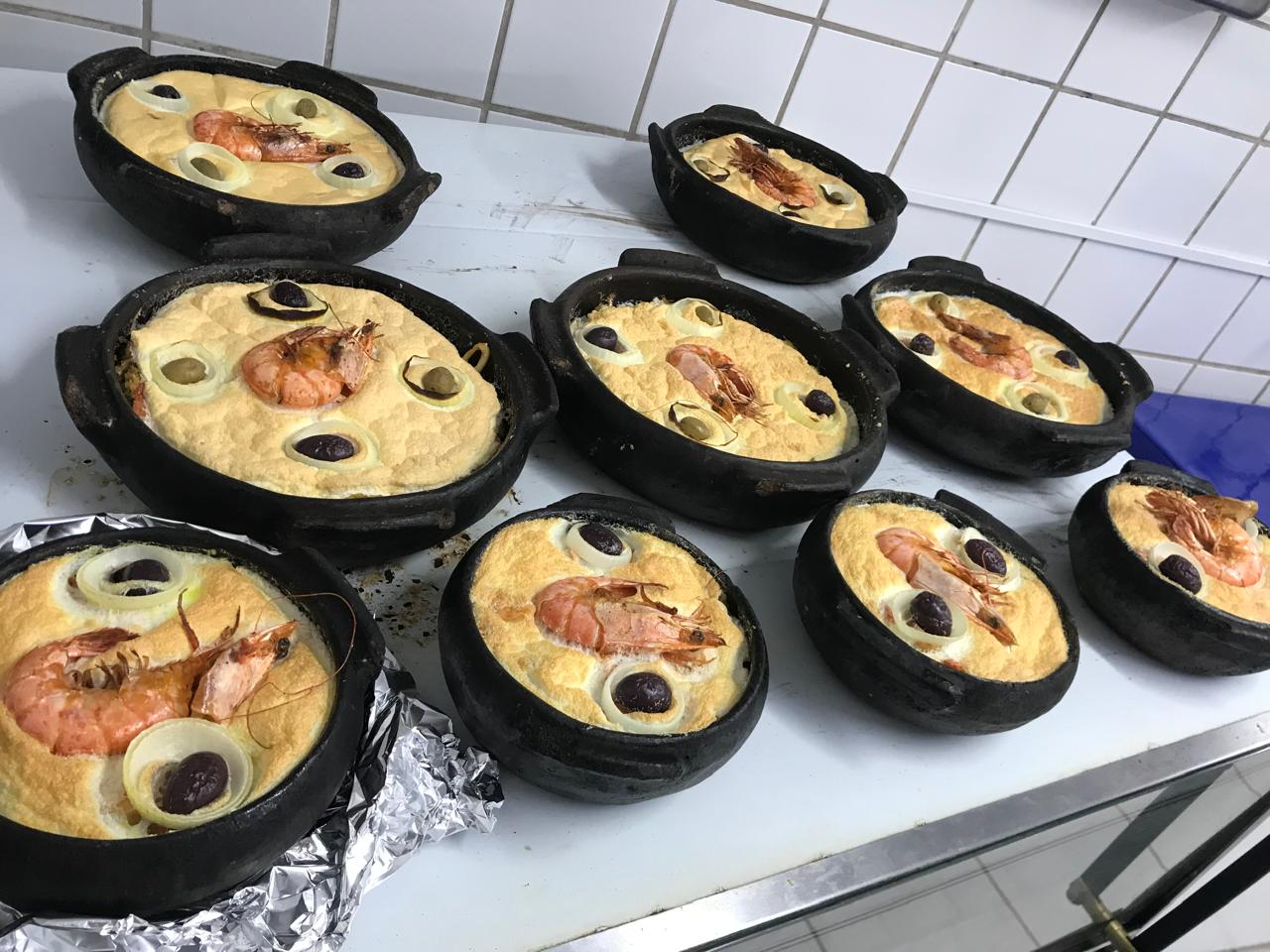Em uma panela de barro, aqueça o azeite e doure o alho e a cebola até atingirem um ponto levemente dourado e aromático.